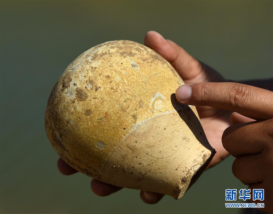 6月14日,在山东小清河章丘段考古发掘现场,考古工作者展示出土的瓷瓶。近日,济南市考古研究所考古工作队在对小清河章丘段进行考古调查和勘探时,发现了13座年代集中在北朝末期至唐朝初期的古墓。新华社记者 王凯 摄