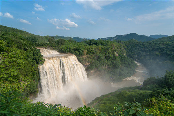 航拍黄果树大瀑布直泻山谷蔚为壮观