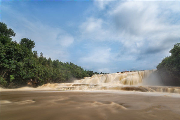 2019年6月8日,贵州安顺,黄果树瀑布进入丰水期。图为黄果树大瀑布上游的陡坡塘瀑布。袁博 /视觉中国