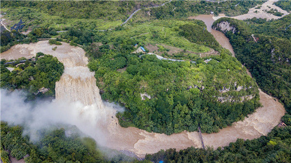 2019年6月12日,贵州省安顺市黄果树瀑布景区。(无人机航拍)