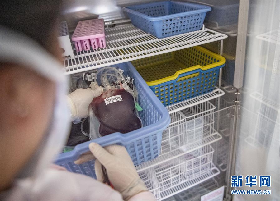 6月14日,在拉萨市宇拓路的献血点,西藏自治区血液中心工作人员将血袋放入医用血液冷藏箱。当日是世界献血者日。为宣传无偿献血相关知识、传播无偿献血公益理念,世界献血者日宣传和采血活动在拉萨市举办。新华社记者 孙非 摄
