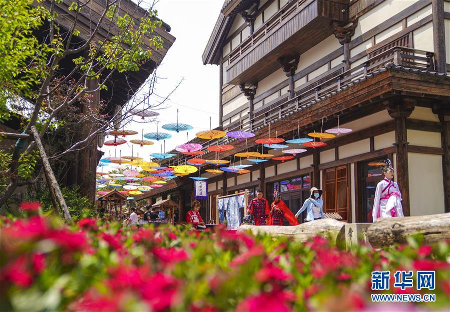 6月13日,在长春市世茂莲花山小镇宽厚里商街,表演者身穿汉服、古装进行表演展示。当日是“文化和自然遗产日”。吉林长春首届莲花山消夏生活节在世茂莲花山小镇举行。活动将非遗展示与假日消暑休闲相结合,让游人在“古色古香”的油纸伞巷中品传统文化魅力,享夏日休闲惬意。新华社记者 许畅 摄