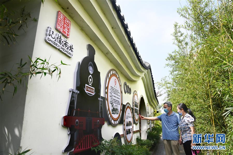 6月11日,市民在新建成的市北区“昌乐园”观看城市变迁介绍。近年来,青岛市市北区充分利用道路节点、棚改腾空土地、零星地块,见缝插“绿”,陆续打造了100余处口袋公园,为市民创造良好的人居环境。新华社记者 李紫恒 摄