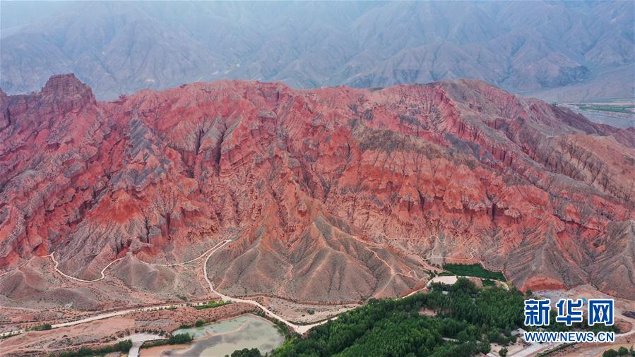 这是6月15日拍摄的位于贵德县境内的丹霞地貌(无人机照片)。夏日时节,位于青海省海南藏族自治州的贵德县迎来连日降雨,多彩的丹霞地貌在雨后色泽愈发鲜艳,在云雾的笼罩下形成一幅幅独特画卷。新华社记者 吴刚 摄