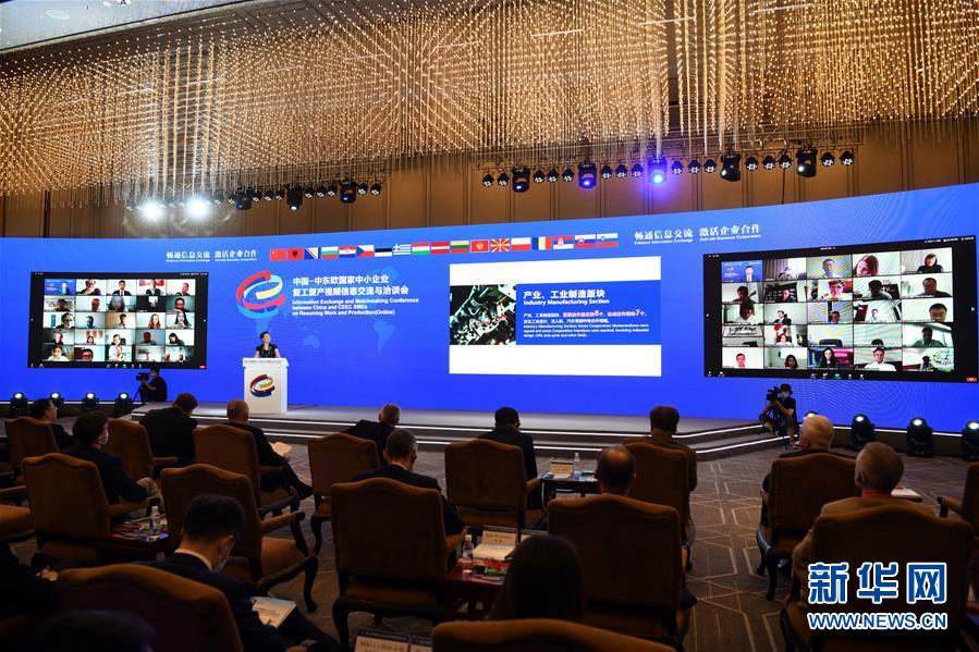 6月16日,中国-中东欧国家中小企业复工复产视频信息交流与洽谈会在北京举行,河北省沧州市设分会场。本次会议以“畅通信息交流,激活企业合作”为主题,157家来自中国与135家来自17个中东欧国家的中小企业和机构围绕“产业、工业制造”“贸易投资、农业”“旅游、人文交流”“医疗卫生”四大版块进行洽谈对接。新华社记者 金良快 摄