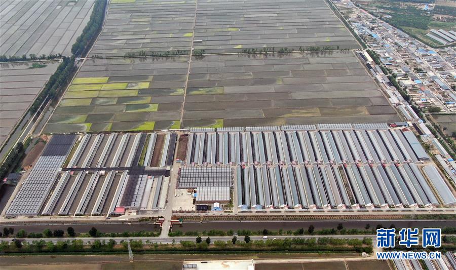 在辽宁省盘锦市大洼区新兴镇拍摄的刘广会经营的现代化育苗大棚(6月9日摄,无人机照片)。新华社记者 杨青 摄