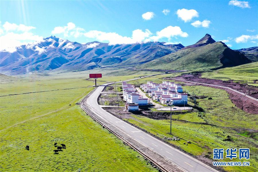 国道317线旁的一处易地扶贫搬迁点(6月14日摄,无人机照片)。新华社记者 田金文 摄
