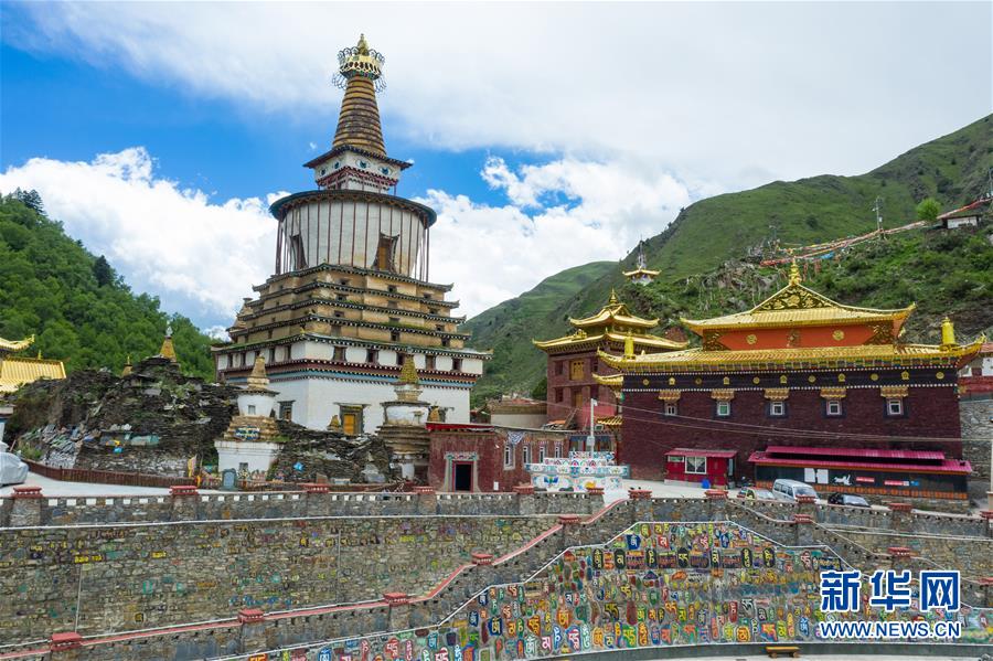 四川省阿坝藏族羌族自治州壤塘县棒托石刻公园(6月13日摄,无人机照片)。新华社记者 沈伯韩 摄