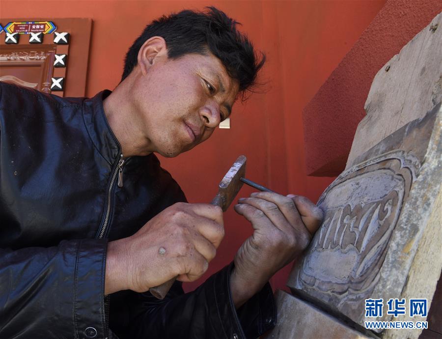 这是在四川省阿坝藏族羌族自治州壤塘县棒托石刻公园拍摄的石刻传习所所长班玛罗尔吾(6月13日摄)。新华社记者 沈伯韩 摄
