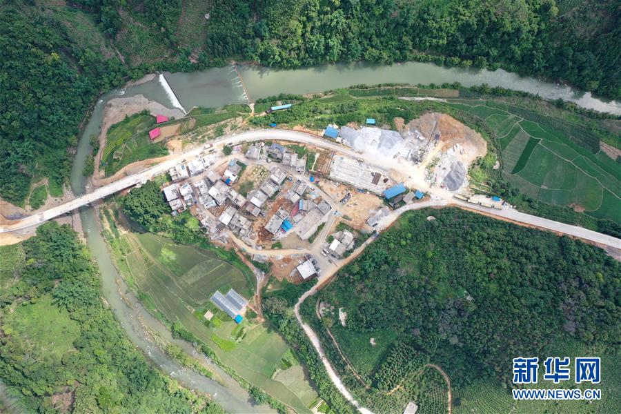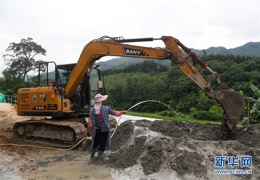 6月17日,工人在百坭村建设挡土墙。新华社记者 陆波岸 摄