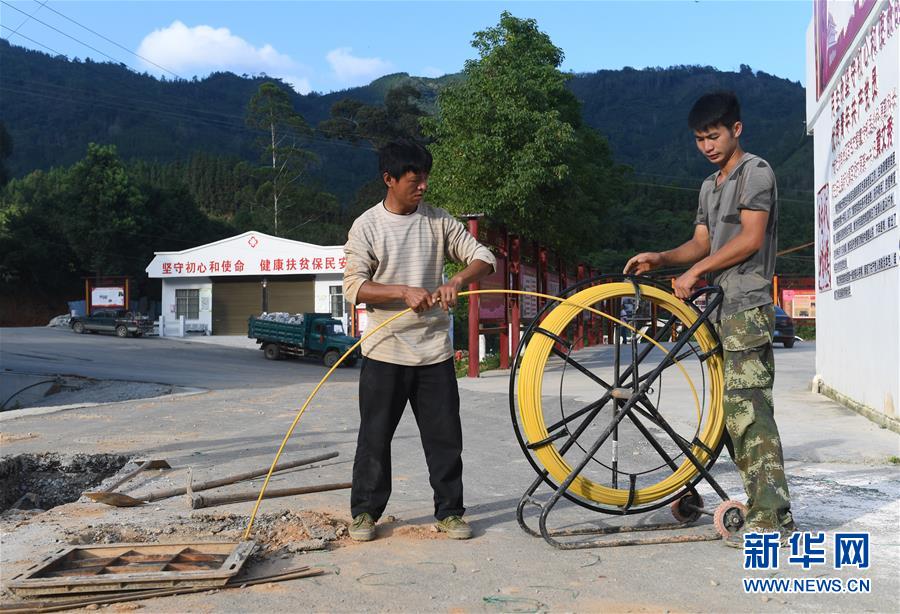 两名工人在百坭村施工(6月16日摄)。新华社记者 陆波岸 摄