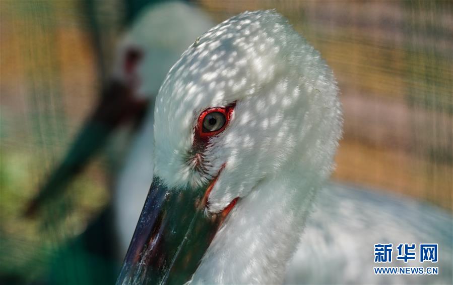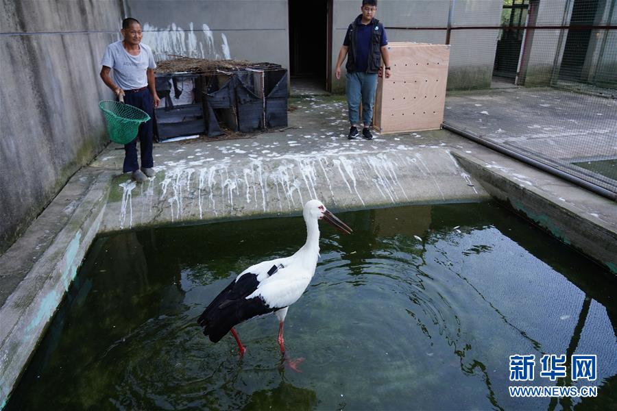 6月17日,东方白鹳在笼中等待放飞。新华社记者 周密 摄