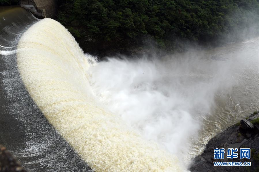 6月16日,位于安徽省金寨县的青山水库在进行泄洪。新华社记者 周牧 摄