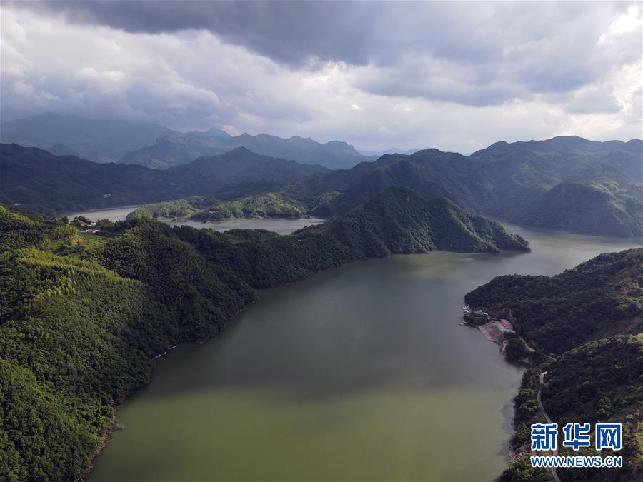 这是6月17日拍摄的位于安徽省霍山县的白莲崖水库(无人机照片)。新华社记者 周牧 摄