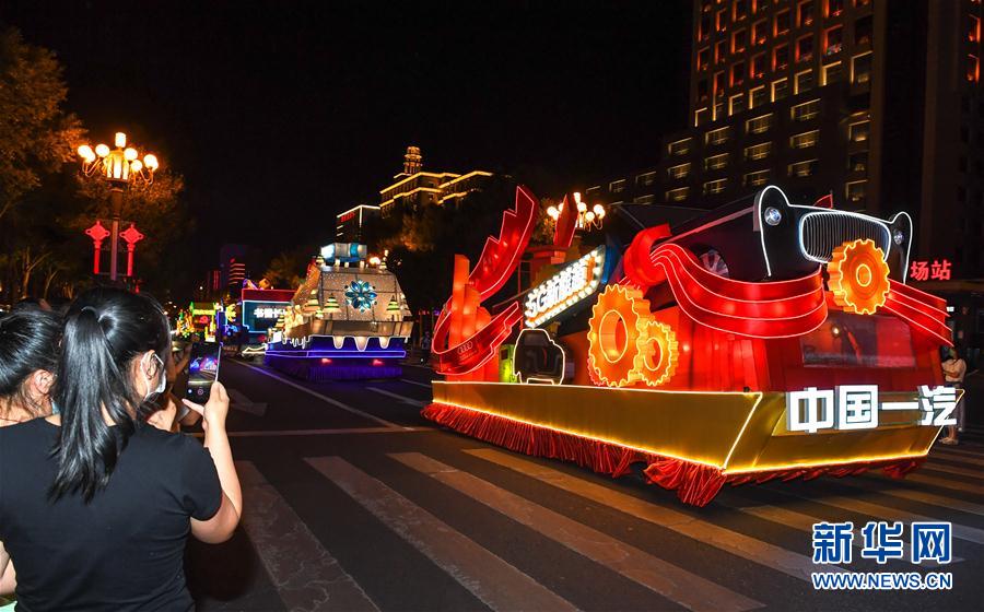6月19日,花车在长春市人民大街上巡游。新华社记者张楠摄