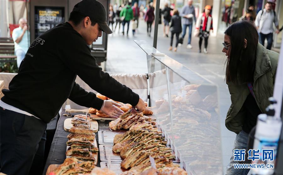 6月19日,一名摊主在澳大利亚悉尼查茨伍德镇销售食品。