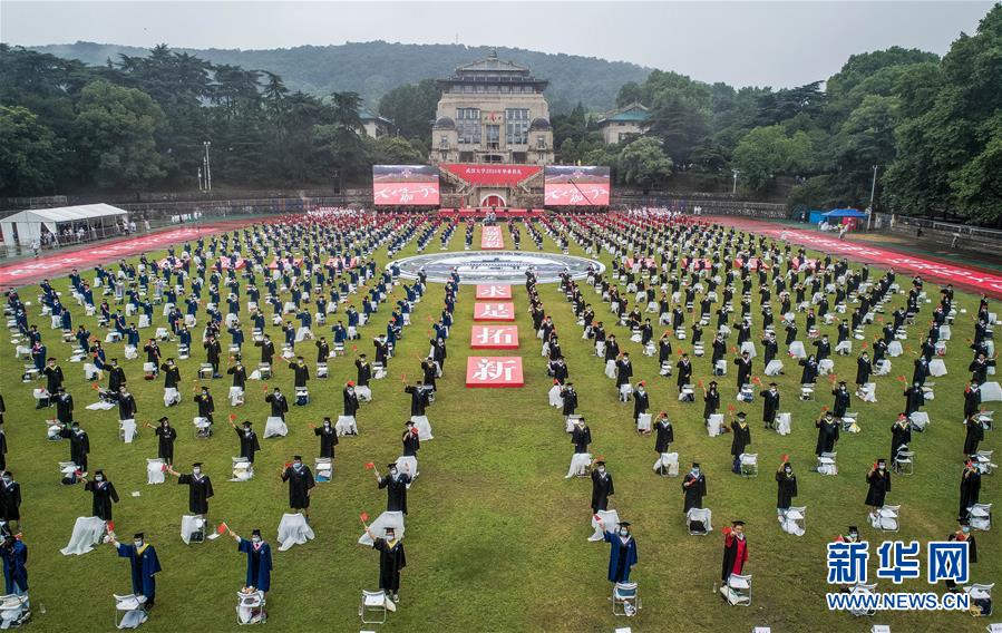 6月20日拍摄的武汉大学2020年毕业典礼现场(无人机照片)。