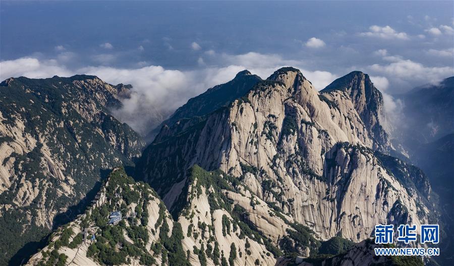 6月18日,白云飘动下的华山。当日,西岳华山经历连续三天暴雨后,迎来灿烂的阳光。新华社记者 陶明 摄