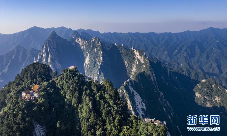 6月18日拍摄的华山南峰(无人机照片)。当日,西岳华山经历连续三天暴雨后,迎来灿烂的阳光。新华社记者 陶明 摄