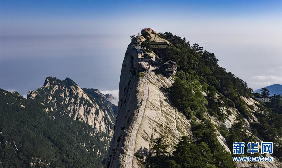 6月18日拍摄的华山西峰(无人机照片)。当日,西岳华山经历连续三天暴雨后,迎来灿烂的阳光。新华社记者 陶明 摄