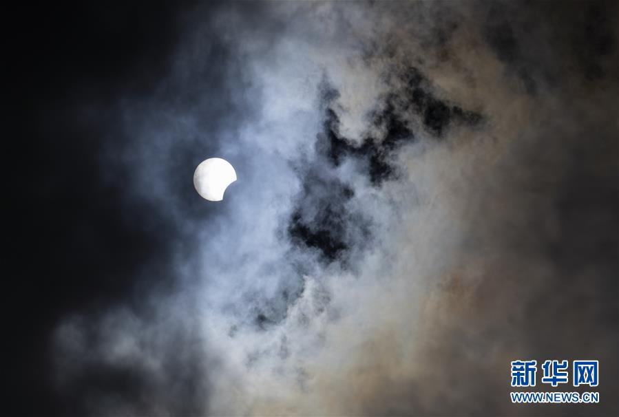 在拉萨观赏到的日食(6月21日摄)。“日环食”天文景观于6月21日“夏至日”下午在天宇上演。新华社记者 孙非 摄