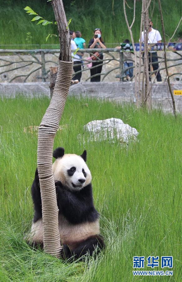 在位于四川省阿坝藏族羌族自治州的九寨沟大熊猫园拍摄的大熊猫(6月19日摄)。新华社记者刘坤摄