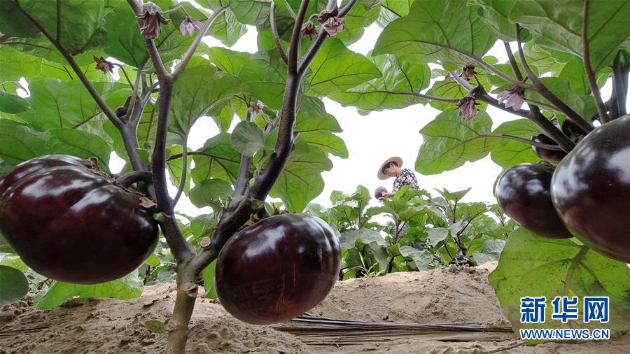 6月21日,滦州市小马庄镇大马庄村的菜农在收获茄子。近年来,河北省滦州市积极调整农业产业结构,鼓励当地合作社和农户发展果蔬种植,丰富当地农产品种类,越来越多的农民依靠“果园子”“菜篮子”鼓起了“钱袋子”。新华社记者牟宇摄