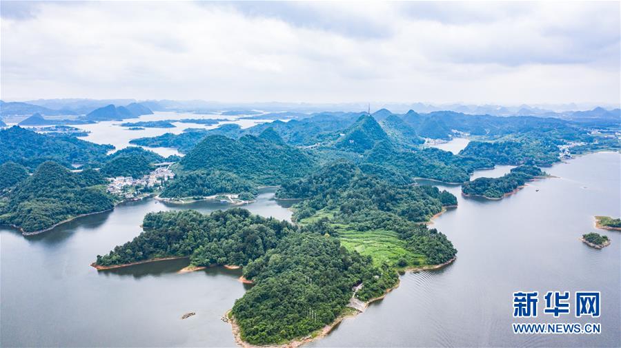 6月21日拍摄的红枫湖景区风光(无人机照片)。夏至时节,贵州省清镇市红枫湖景区草木苍翠,秀丽的湖光山色吸引不少游客前来游玩。新华社记者陶亮摄