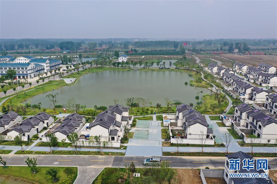 6月20日拍摄的泗阳县爱园镇松张口社区(无人机照片)。近年来,江苏省宿迁市泗阳县大力推进农房改善工作,提高群众生活品质。爱园镇松张口社区农房改善项目将公共空间治理与农房改善工作相结合,抓好建筑质量的同时,注重小区整体环境建设,打造风景如画的新农村。新华社记者季春鹏摄