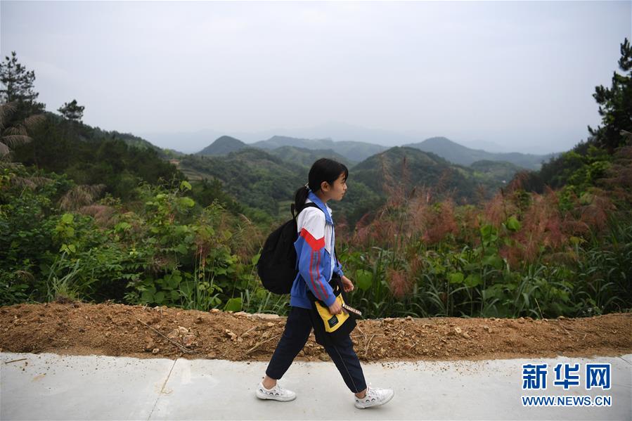 6月19日,蔡齐艳放学后步行回家过周末。新华社记者刘军喜摄