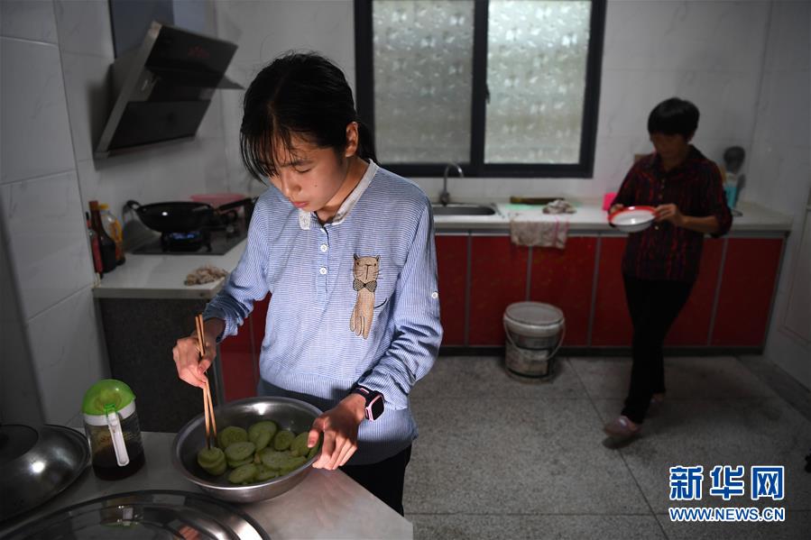 6月19日,蔡齐艳在家里帮妈妈准备晚餐。新华社记者刘军喜摄