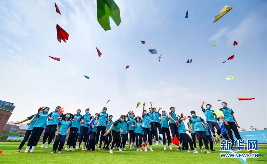 6月22日,河北省邯郸市邯山区第一中学的高三学生将写有自己梦想的纸飞机抛向空中。2020年高考临近,河北省邯郸市邯山区第一中学在积极做好高三学生复习备考的同时,开展多种形式的减压活动,帮助学生释放紧张情绪。新华社记者王晓摄