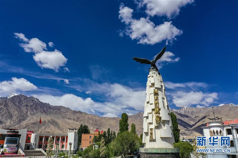 这是位于新疆塔什库尔干塔吉克自治县县城的“帕米尔雄鹰”雕塑(6月20日摄,无人机照片)。新华社记者胡虎虎摄