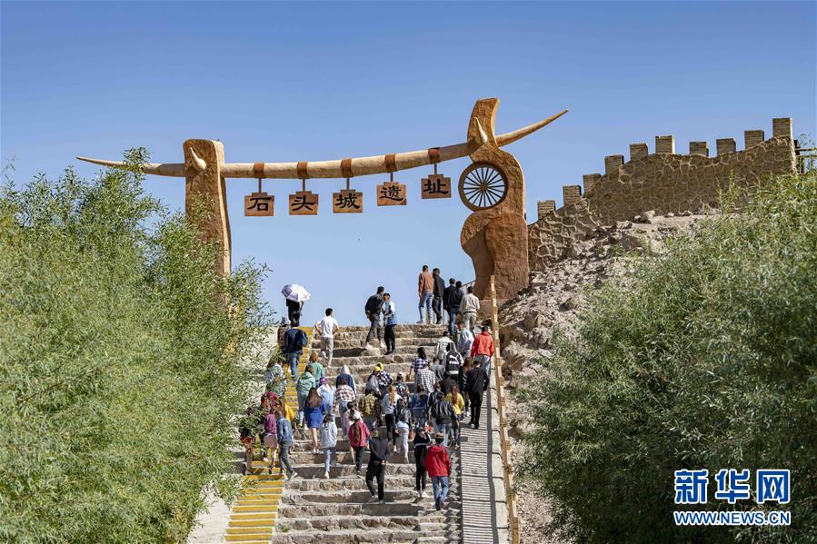 游客在新疆塔什库尔干塔吉克自治县石头城遗址观光游玩(6月21日摄)。新华社记者胡虎虎摄