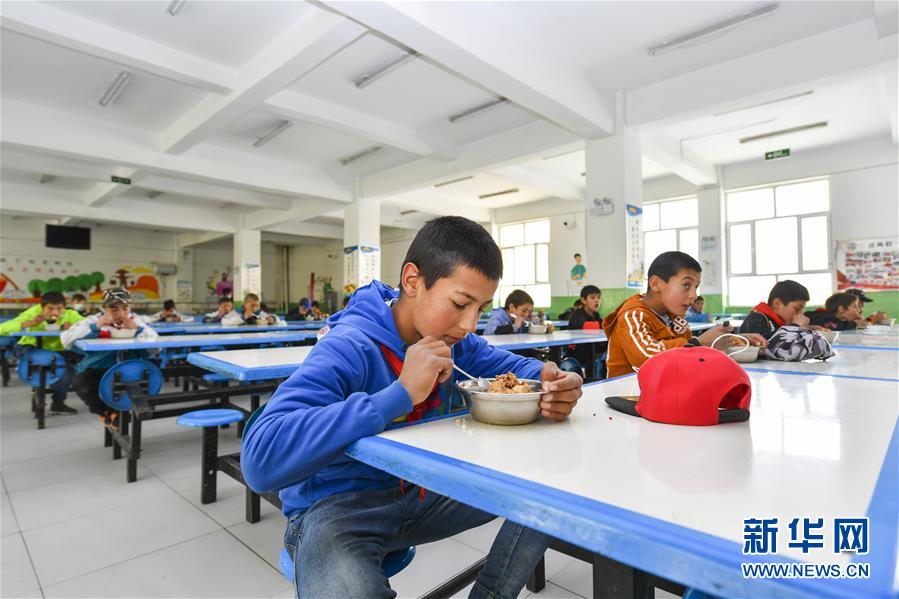 新疆塔什库尔干塔吉克自治县城乡寄宿制小学学生在吃营养午餐(6月3日摄)。新华社记者胡虎虎摄