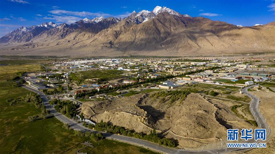 位于帕米尔高原上的新疆塔什库尔干塔吉克自治县县城(6月10日摄,无人机照片)。新华社记者胡虎虎摄
