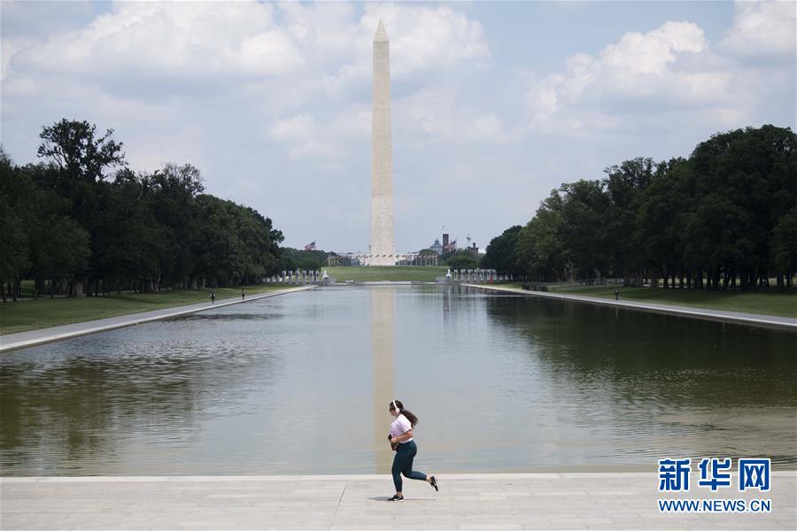 6月22日,在美国首都华盛顿,一名女子在华盛顿纪念碑附近跑步。美国约翰斯·霍普金斯大学22日发布的新冠疫情最新统计数据显示,美国累计死亡病例超过12万例。新华社记者刘杰摄