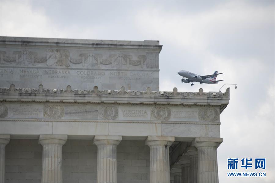 6月22日,在美国首都华盛顿,一架飞机从林肯纪念堂上空飞过。美国约翰斯·霍普金斯大学22日发布的新冠疫情最新统计数据显示,美国累计死亡病例超过12万例。新华社记者刘杰摄