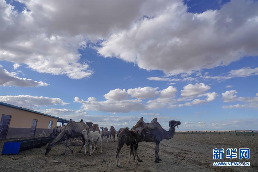在吉木乃县万驼园内拍摄的正在脱毛的骆驼(6月21日摄)。这些掉落的驼毛可以加工成驼绒产品。新华社记者赵戈摄