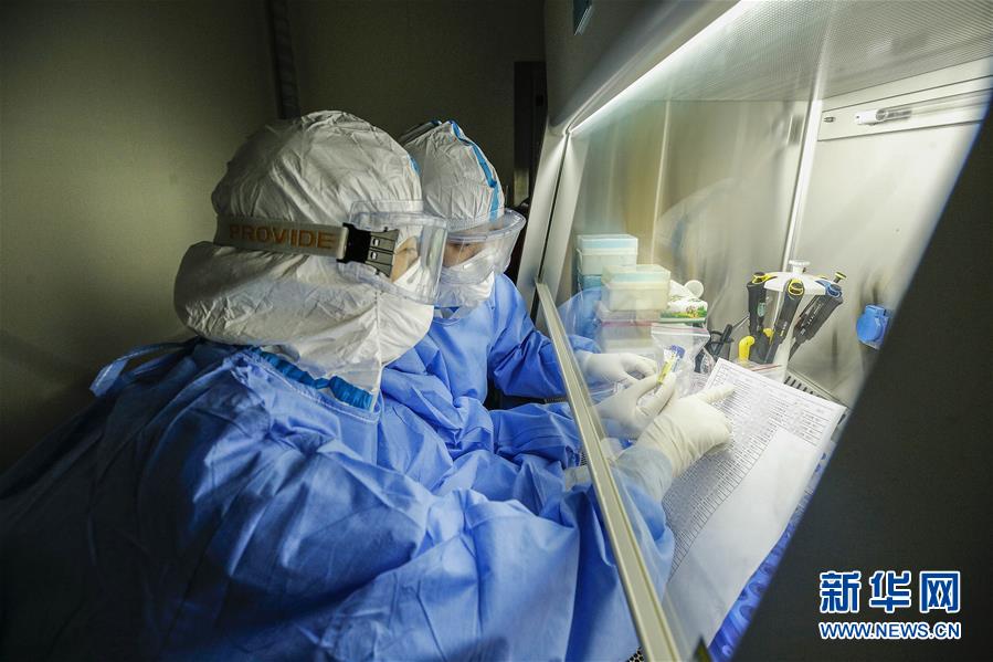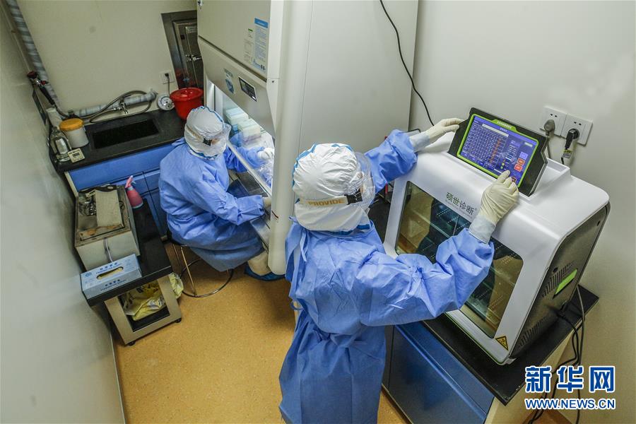 6月23日,两位检验人员在实验室内工作。6月15日,北京市普仁医院PCR实验室正式启用,并立即投入到新冠肺炎病毒核酸检测工作之中,为新冠肺炎疫情防控增添利器。普仁医院PCR实验室启用以来,除了来自本院发热门诊、门急诊、病房和核酸检测采样点的样本之外,还承接了社区以及东城区集中核酸检测点采集的部分样本。新华社记者张玉薇摄