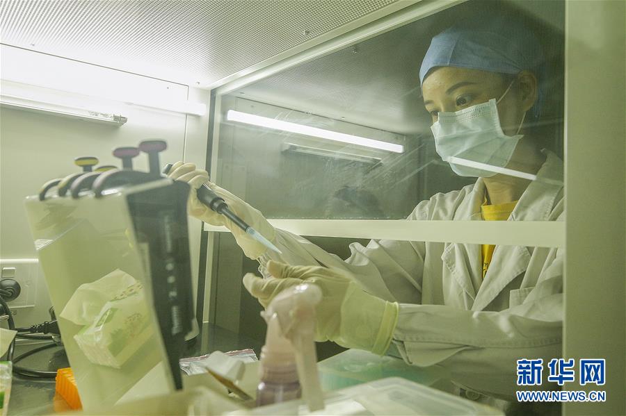 6月23日,检验人员罗燕在实验室内制备检验试剂。6月15日,北京市普仁医院PCR实验室正式启用,并立即投入到新冠肺炎病毒核酸检测工作之中,为新冠肺炎疫情防控增添利器。普仁医院PCR实验室启用以来,除了来自本院发热门诊、门急诊、病房和核酸检测采样点的样本之外,还承接了社区以及东城区集中核酸检测点采集的部分样本。新华社记者张玉薇摄
