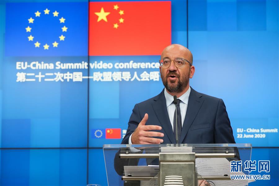 6月22日,欧洲理事会主席米歇尔在位于比利时布鲁塞尔的欧盟总部出席第二十二次中国-欧盟领导人会晤后举行的新闻发布会。新华社记者郑焕松摄