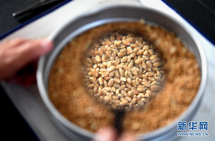 6月23日,在河北柏乡国家粮食储备库,工作人员在查看小麦质量。麦收过后,河北柏乡国家粮食储备库积极腾仓纳粮,做好夏粮收储入库工作,确保农民顺利卖粮。新华社记者王晓摄