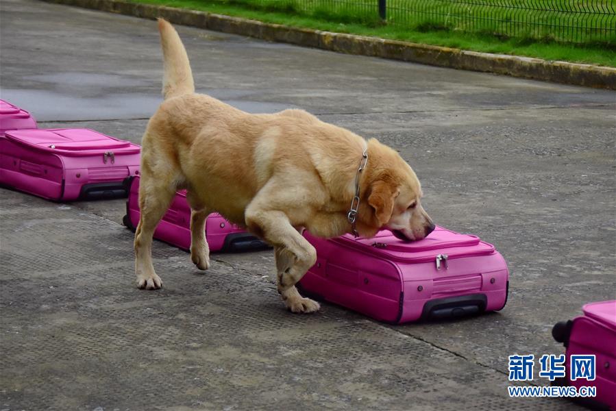 6月24日,缉毒犬“多多”练习辨认毒品的位置。新华社记者 郑梦雨 摄
