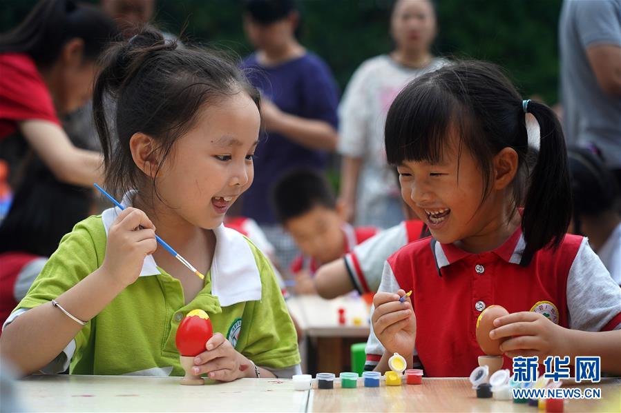 6月24日,南昌市湾里区站前街道文明北路社区的孩子们在画彩蛋。端午节临近,各地举行包粽子、做香包、赛龙舟等丰富多彩的民俗文化活动,迎接传统佳节的到来。新华社记者万象摄