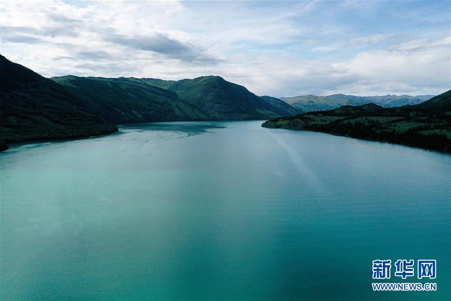 这是6月24日拍摄的新疆喀纳斯景区风光(无人机照片)。夏日的新疆喀纳斯景区,森林、草原、湖泊景致秀美,引人入胜。新华社记者 沙达提 摄