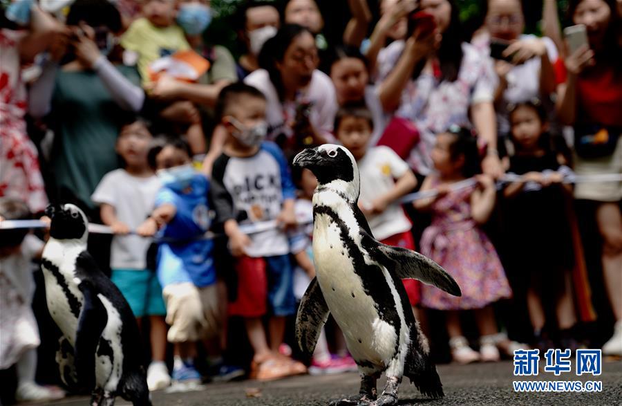 6月26日,上海动物园的企鹅在园内漫步。新华社记者 张建松 摄