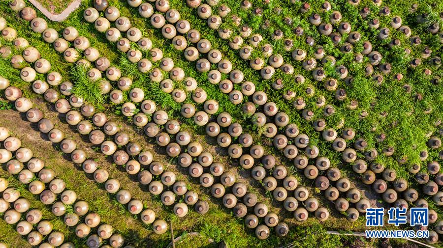 6月26日在曾氏晒醋厂拍摄的晾晒的醋坛(无人机照片)。新华社记者 陶亮 摄