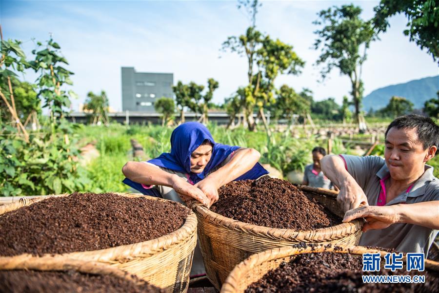 6月26日,工人在曾氏晒醋厂搬运醋醅。新华社记者 陶亮 摄