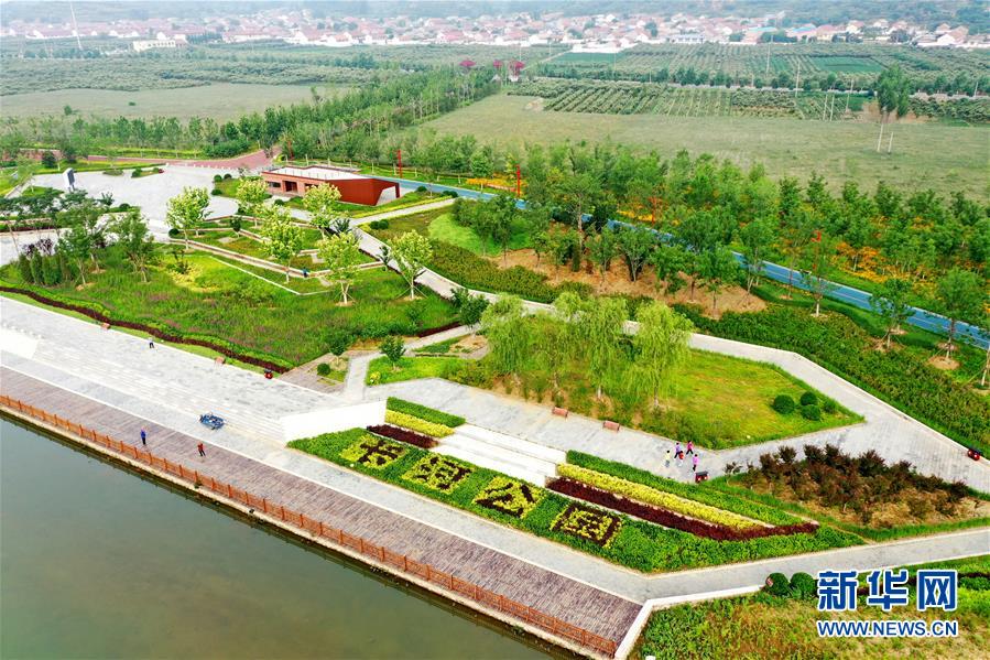 这是6月27日拍摄的迁西县长河带状公园景观(无人机照片)。新华社记者牟宇摄